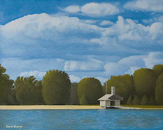 I previously posted the smaller study I did for this painting last January. I used a photo reference that I took while sailing, so this is a different vantage point of a very popular Toronto beach and life guard house. Painted a couple of years ago, I really enjoyed allowing myself to get whimsical with the trees. My breakthrough with this painting was that I used linseed oil instead of liquin, this especially changed how I painted the clouds.